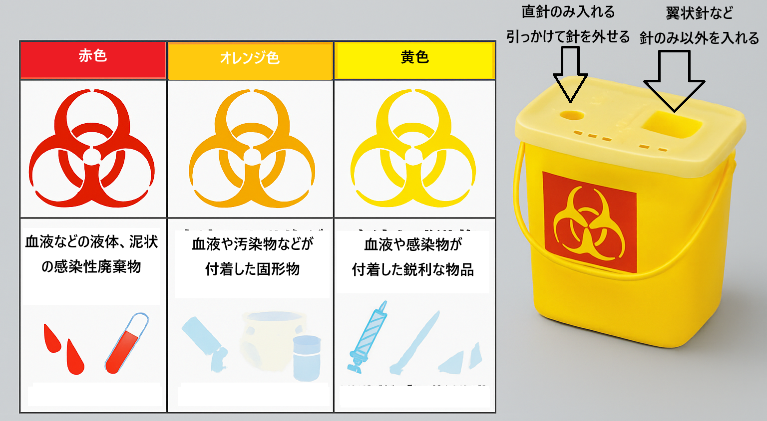 廃棄物の性状に応じて赤、橙、黄の3色に色分けされています