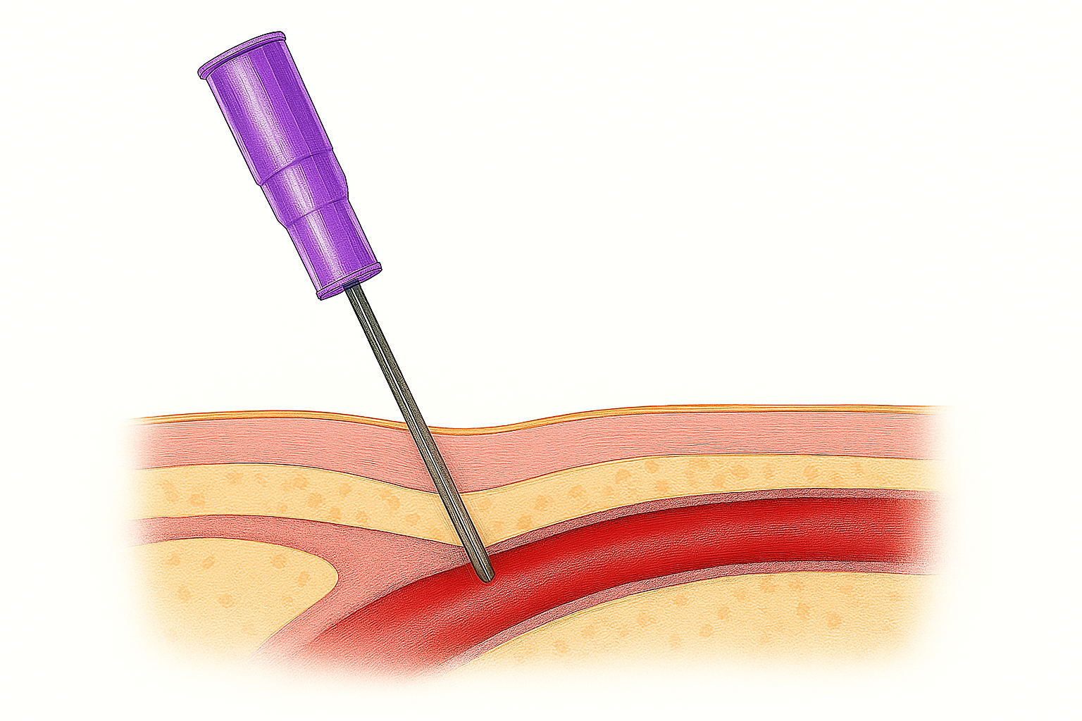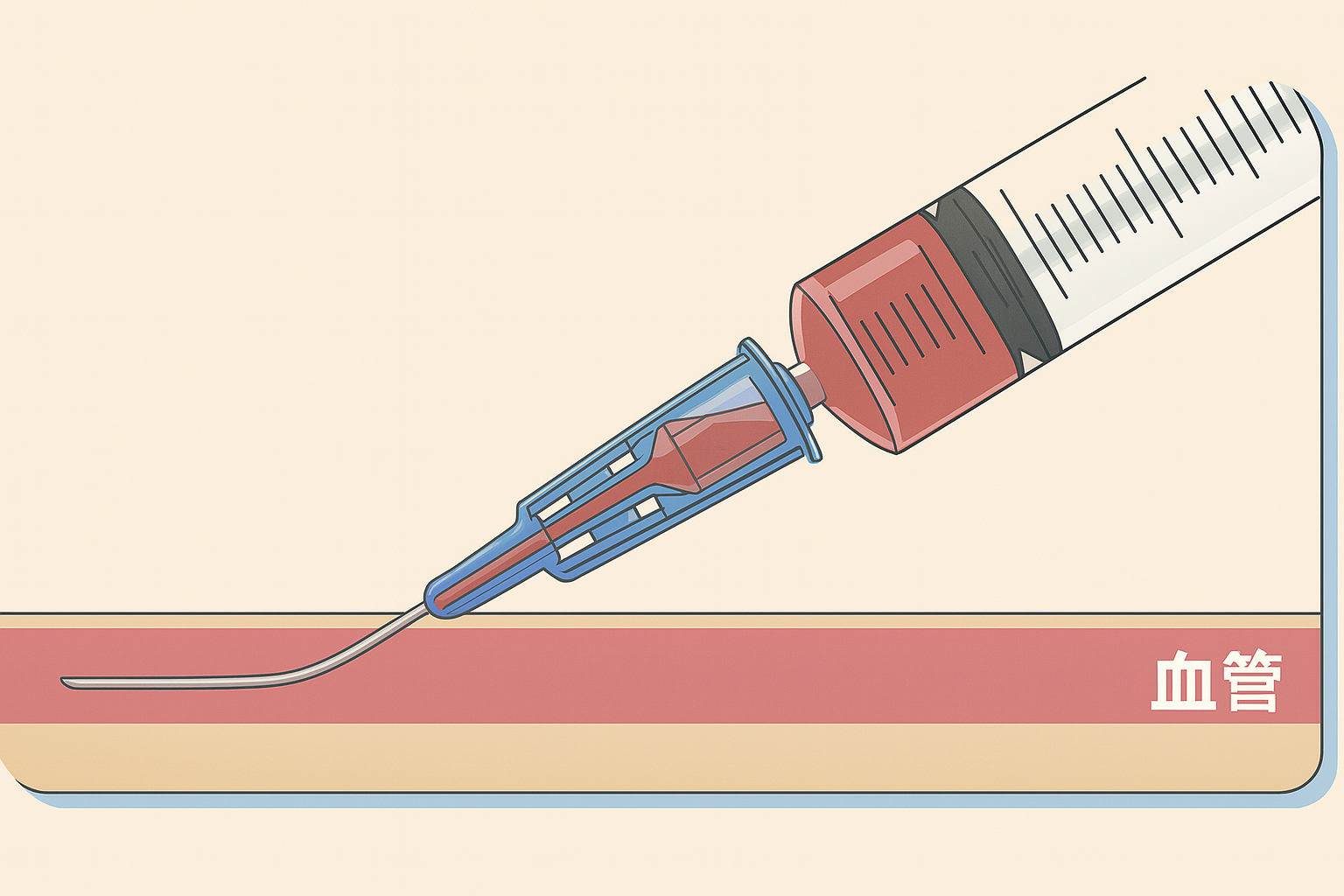 • 血液が引けない:血管内に留置できていない。針の角度や位置を微調整。(血管壁内にある可能性もある)駆血帯の再調整も有効。