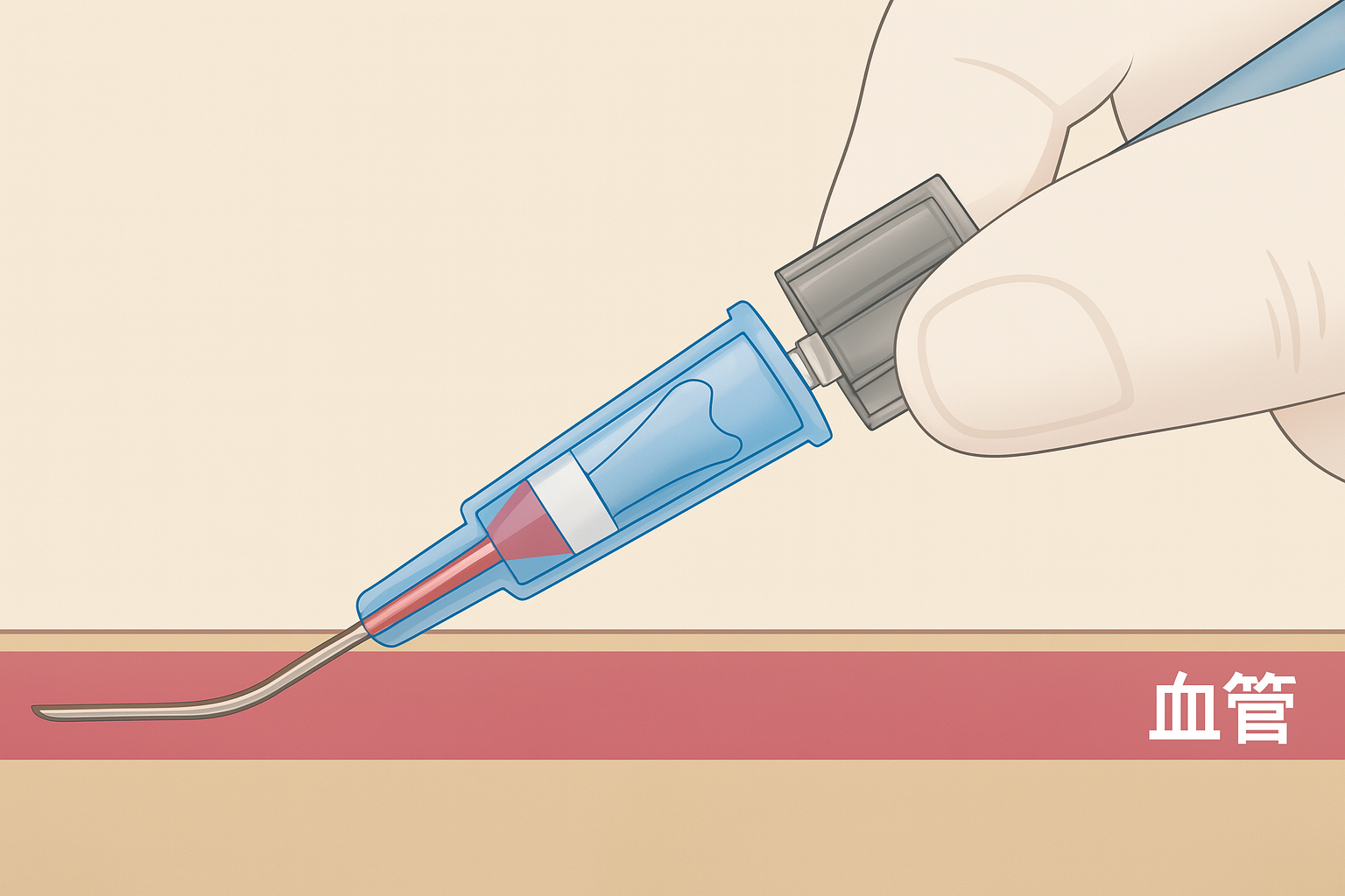 • 一度血液が引けたのに体内に逆流してしまった:血管壁を貫通してしまったことにより毛細管現象が働かなくなった。