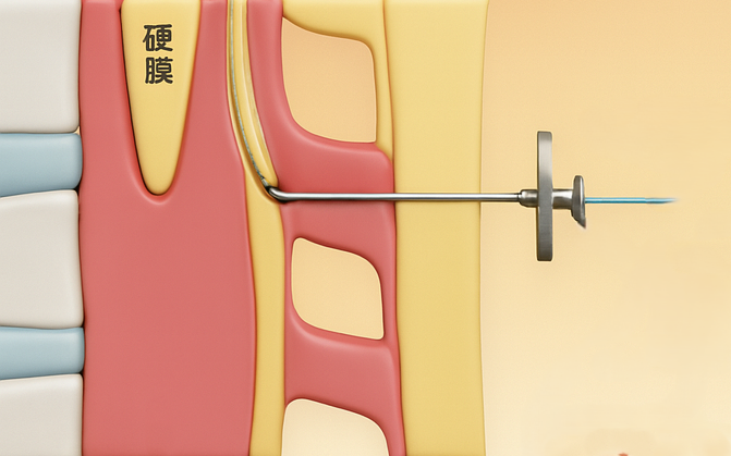 ・カテーテルを硬膜外針に通して硬膜外腔へ挿入します。