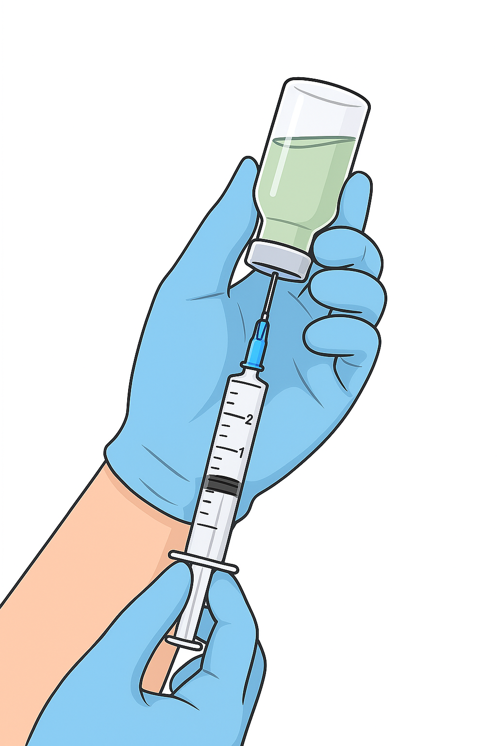 • 針刺し事故防止のため、使用済み針は即廃棄