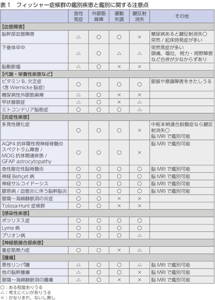 | 急性運動失調 | 3徴の外眼筋麻痺を欠く |